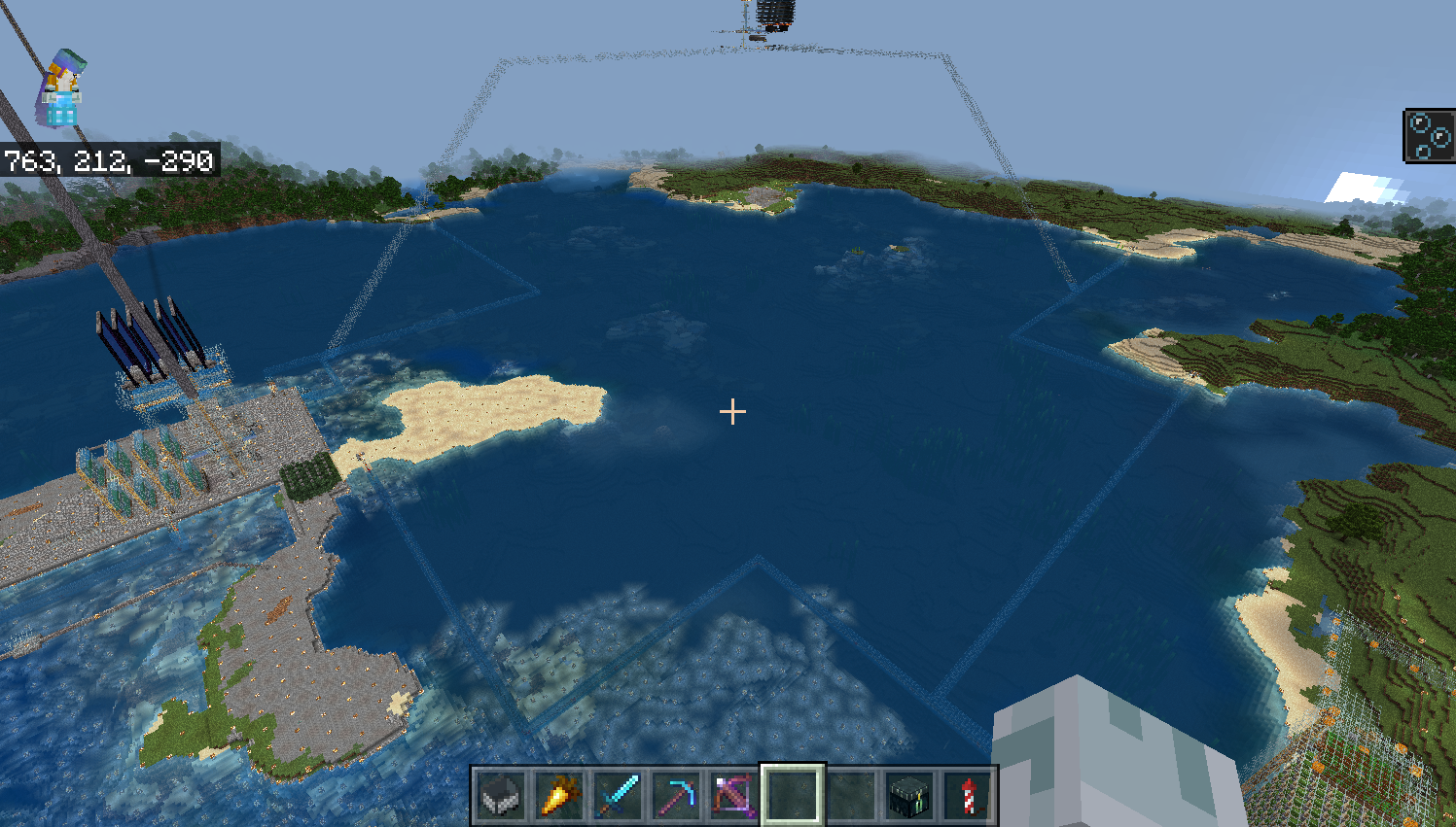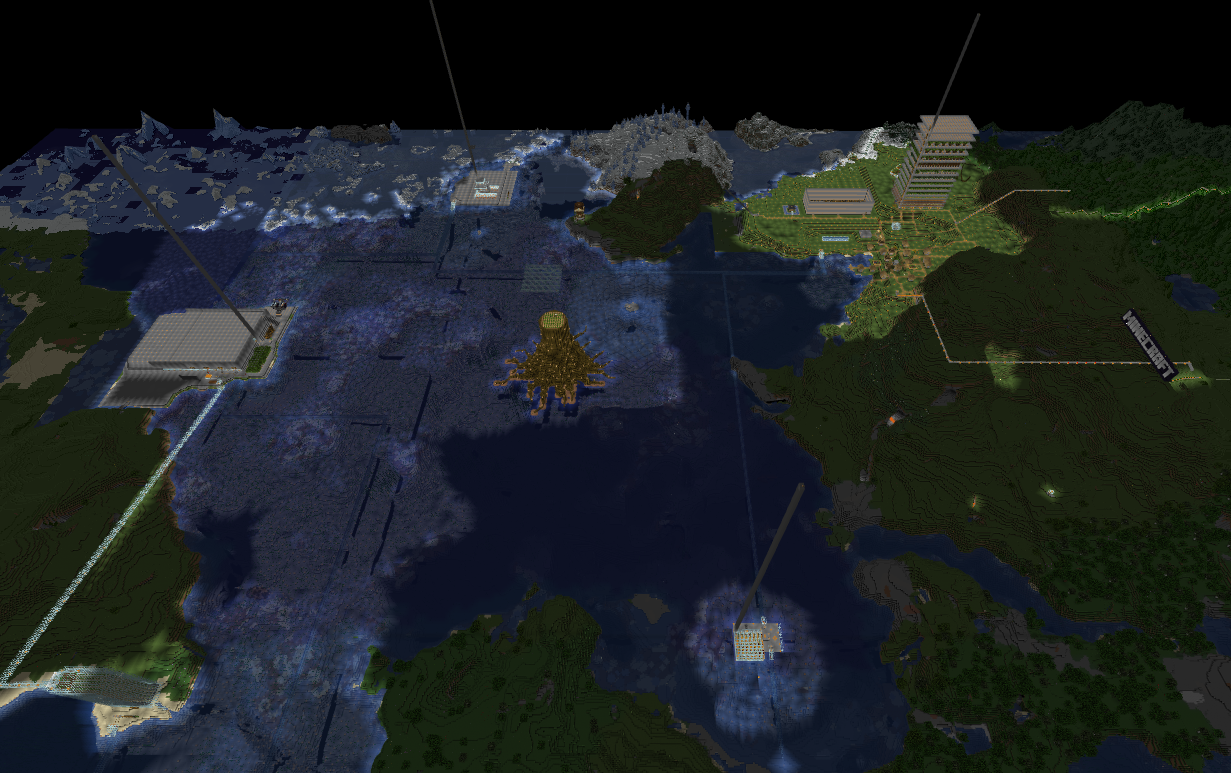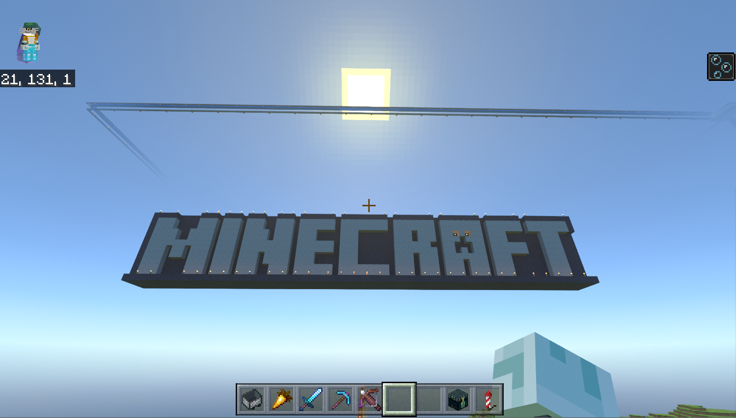 스폰포인트(0,0좌표 근처)에 마인크래프트 로고를 만들었다.